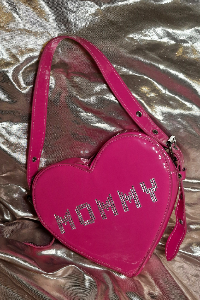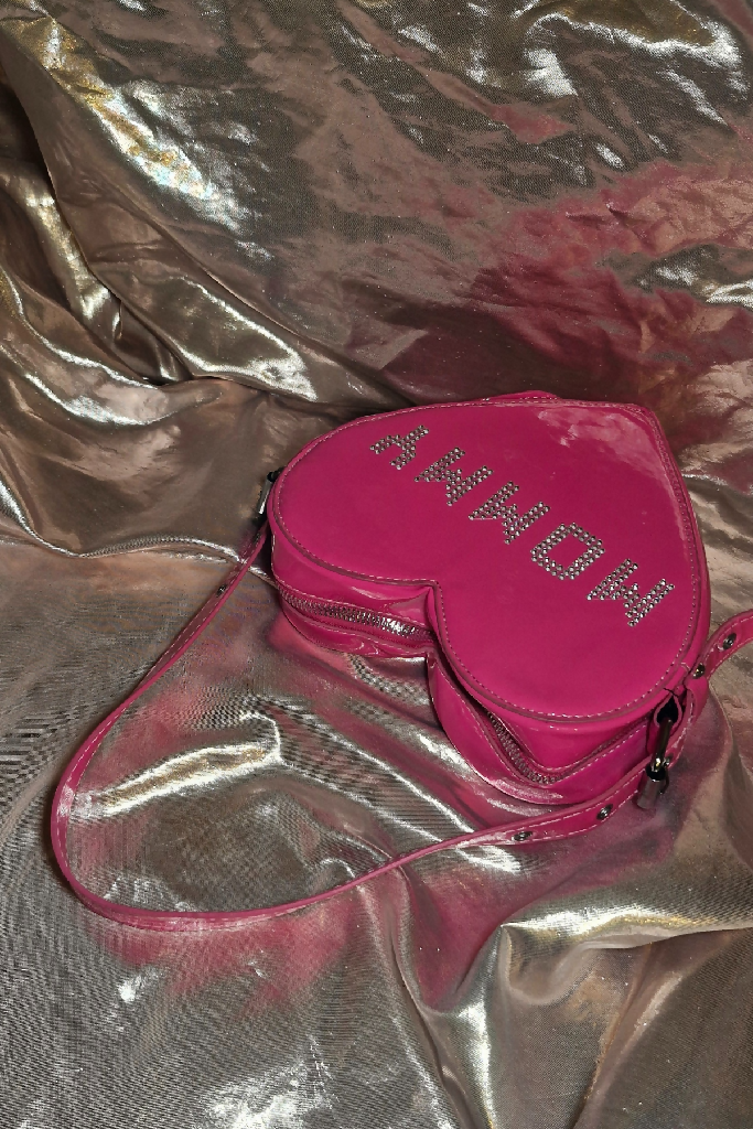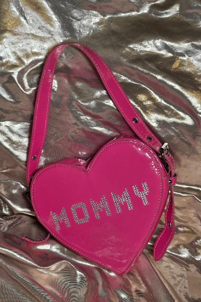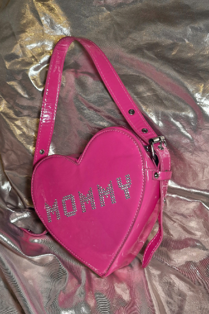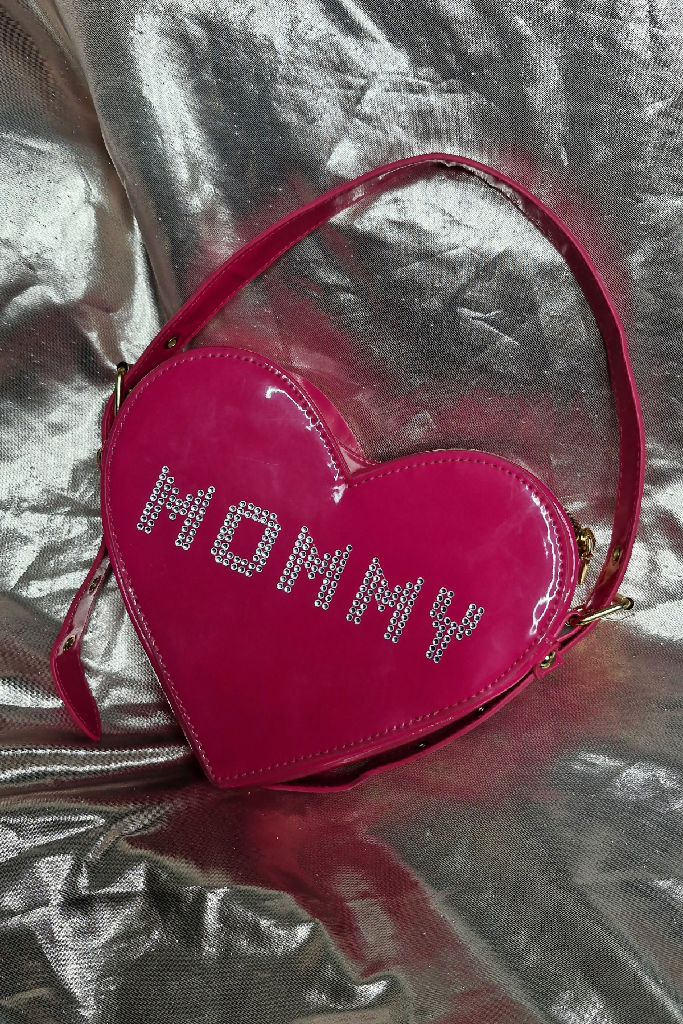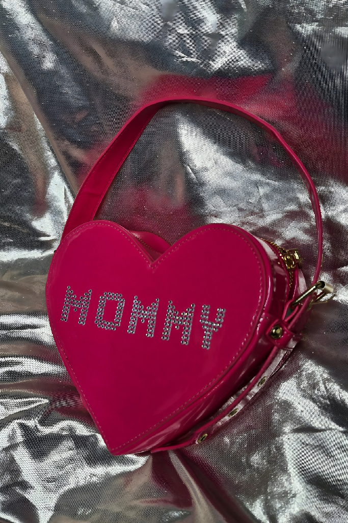 Make a bold statement Mommy with this hot pink heart shaped upcycled rhinestone handbag with adjustable strap. You can wear it as a shoulder bag or clutch for all-day dominance or for your naughty night out.