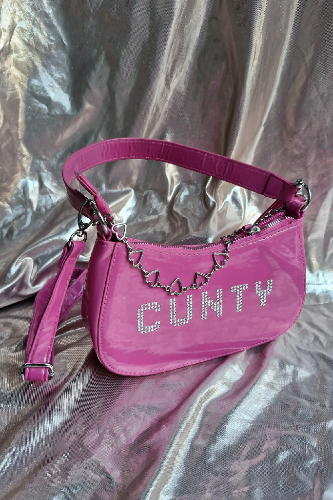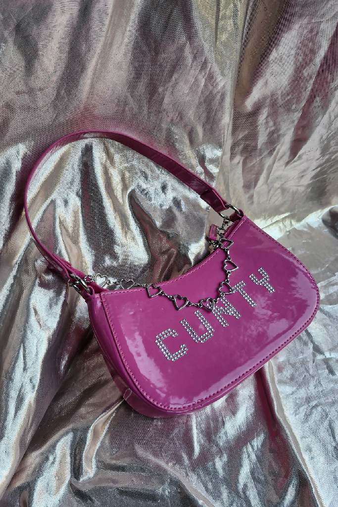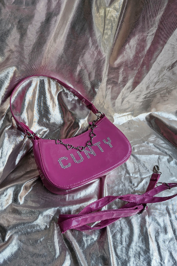 "CUNTY" Upcycled Neon Pink Rhinestone Y2K Cross Body Handbag