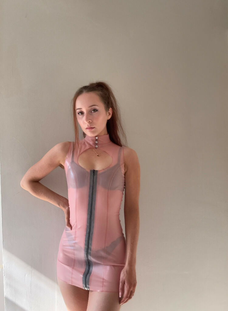 Latex Zip Front, Popper Neck, Body-con Dress, Sleeveless Dress, Mini Dress